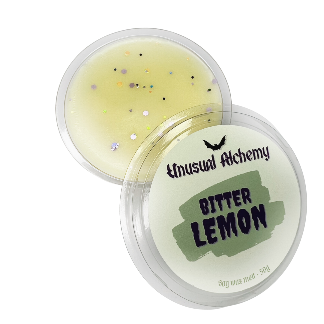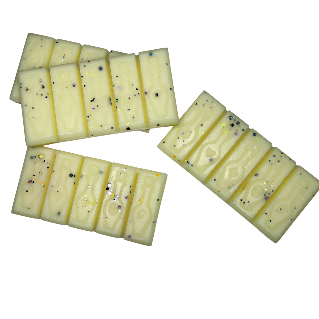 Soy wax snap bar displaying potion bottle designs & packaged in a biodegradable sleeve.