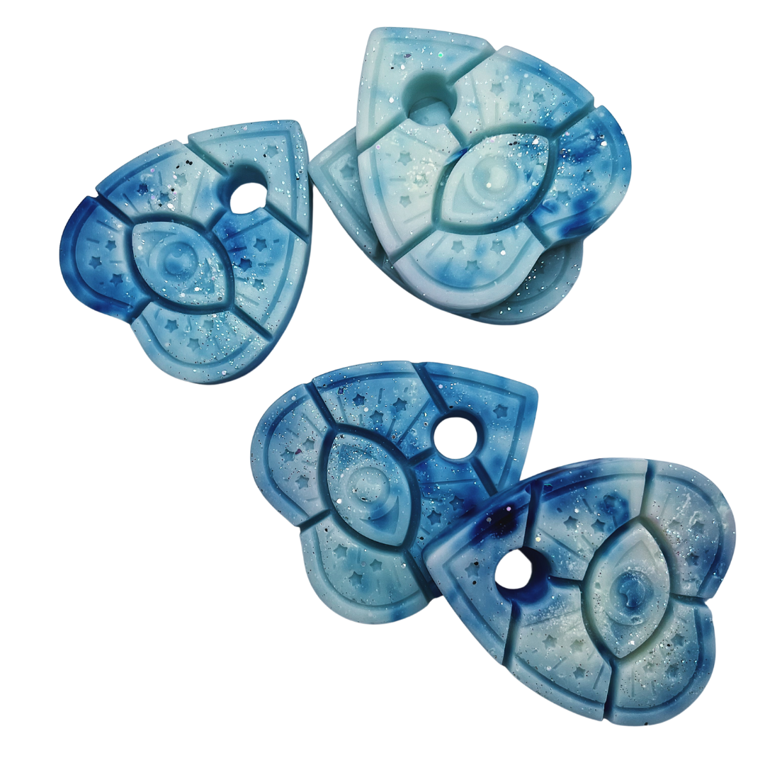 Soy wax snap bar shaped as a traditional planchette & packaged in a biodegradable sleeve