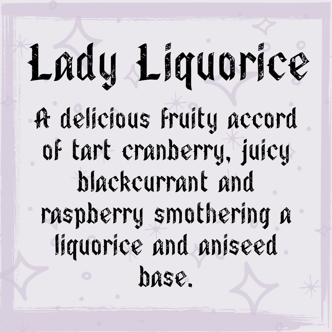 A delicious fruity accord of tart cranberry, juicy blackcurrant and raspberry smothering a liquorice and aniseed base.