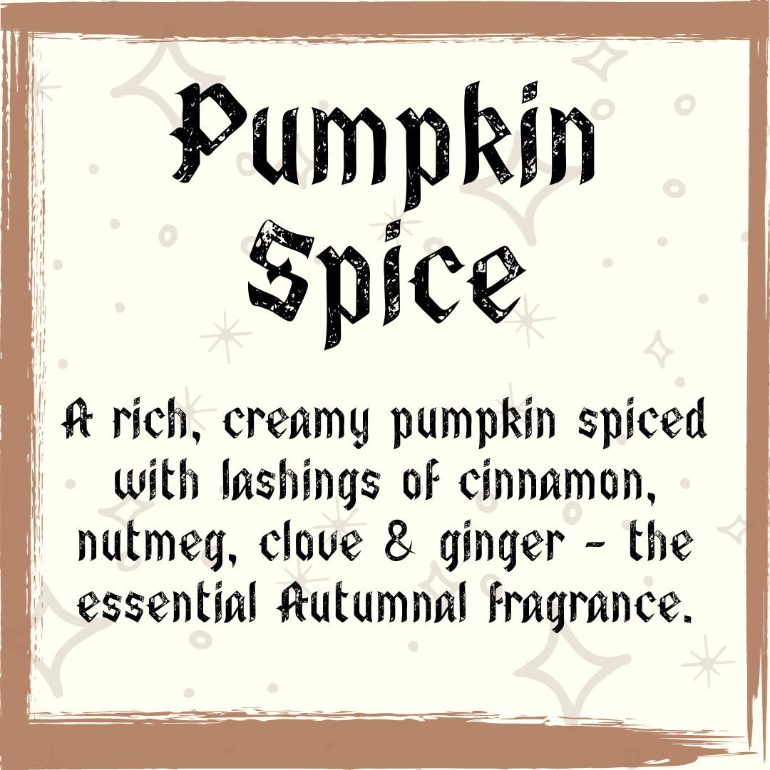 Pumpkin Spice - Rich, creamy pumpkin spiced with lashings of cinnamon, nutmeg, clove and ginger - the essential Autumnal fragrance