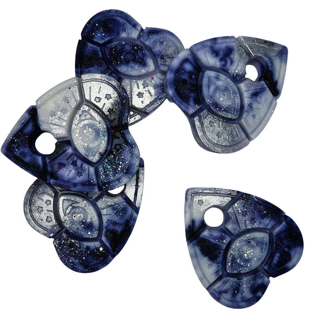Soy wax snap bar shaped as a traditional planchette & packaged in a biodegradable sleeve