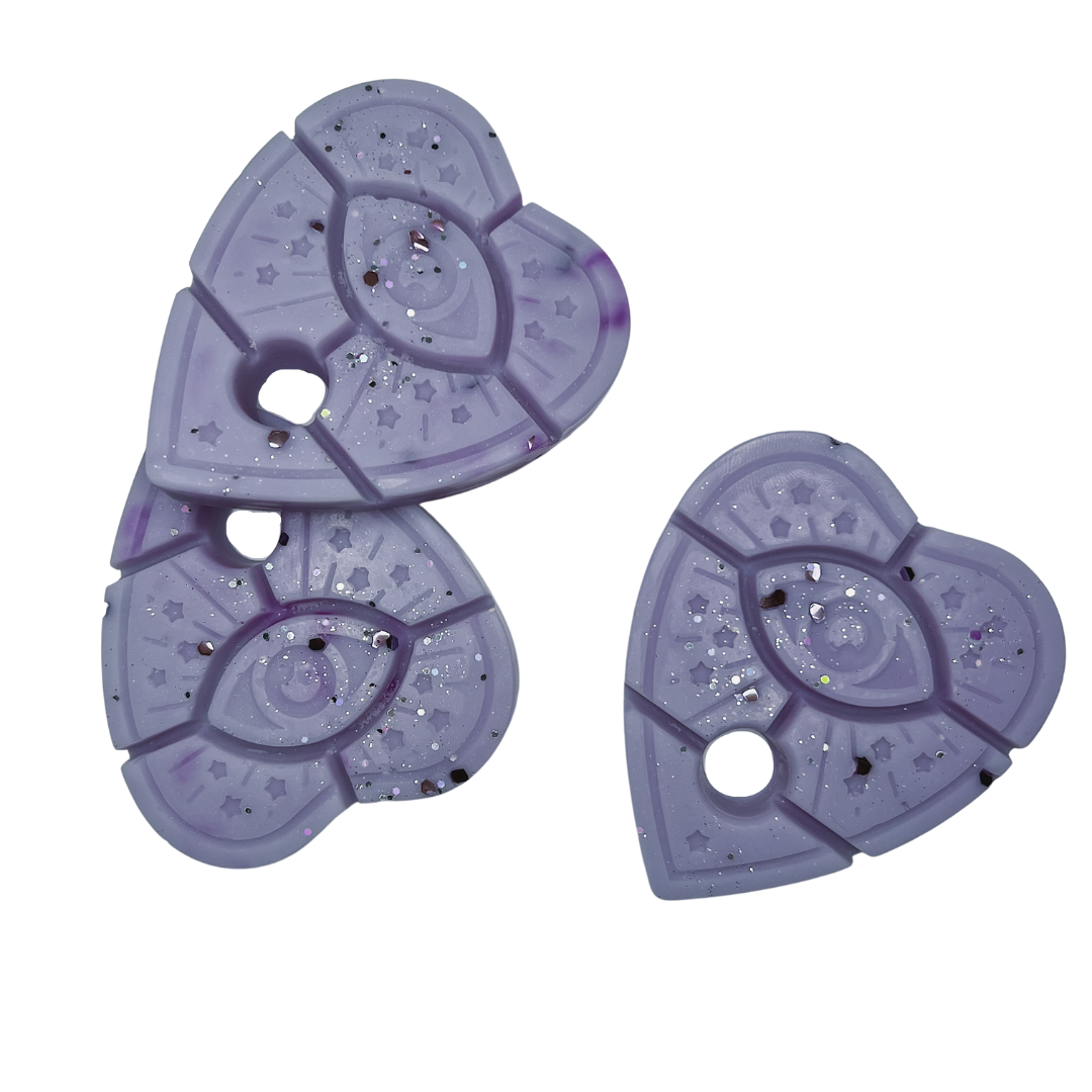 Soy wax snap bar shaped as a traditional planchette & packaged in a biodegradable sleeve